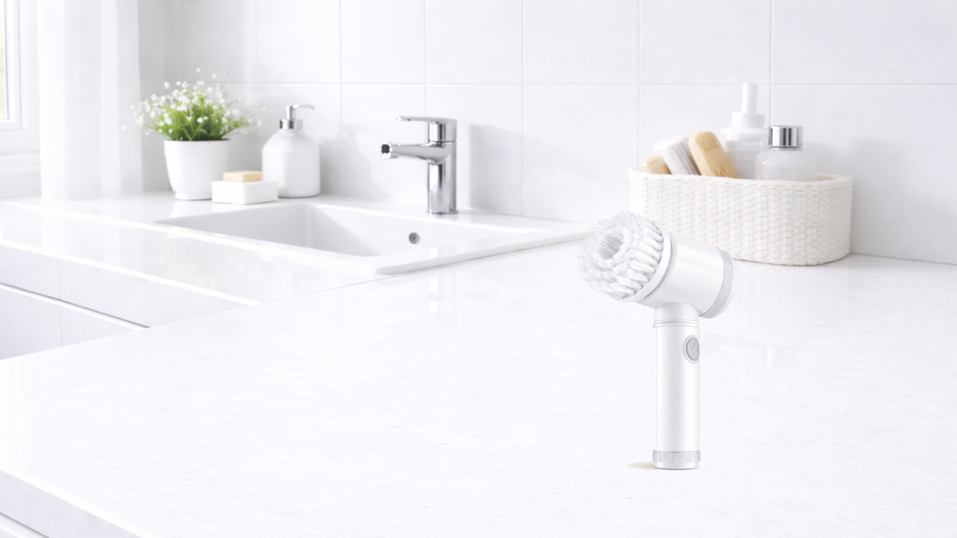 Dans toute la maison. Salle de bain, cuisine, joints, éviers, plaques, douche ou carrelage. Une seule brosse pour nettoyer partout, sans effort.