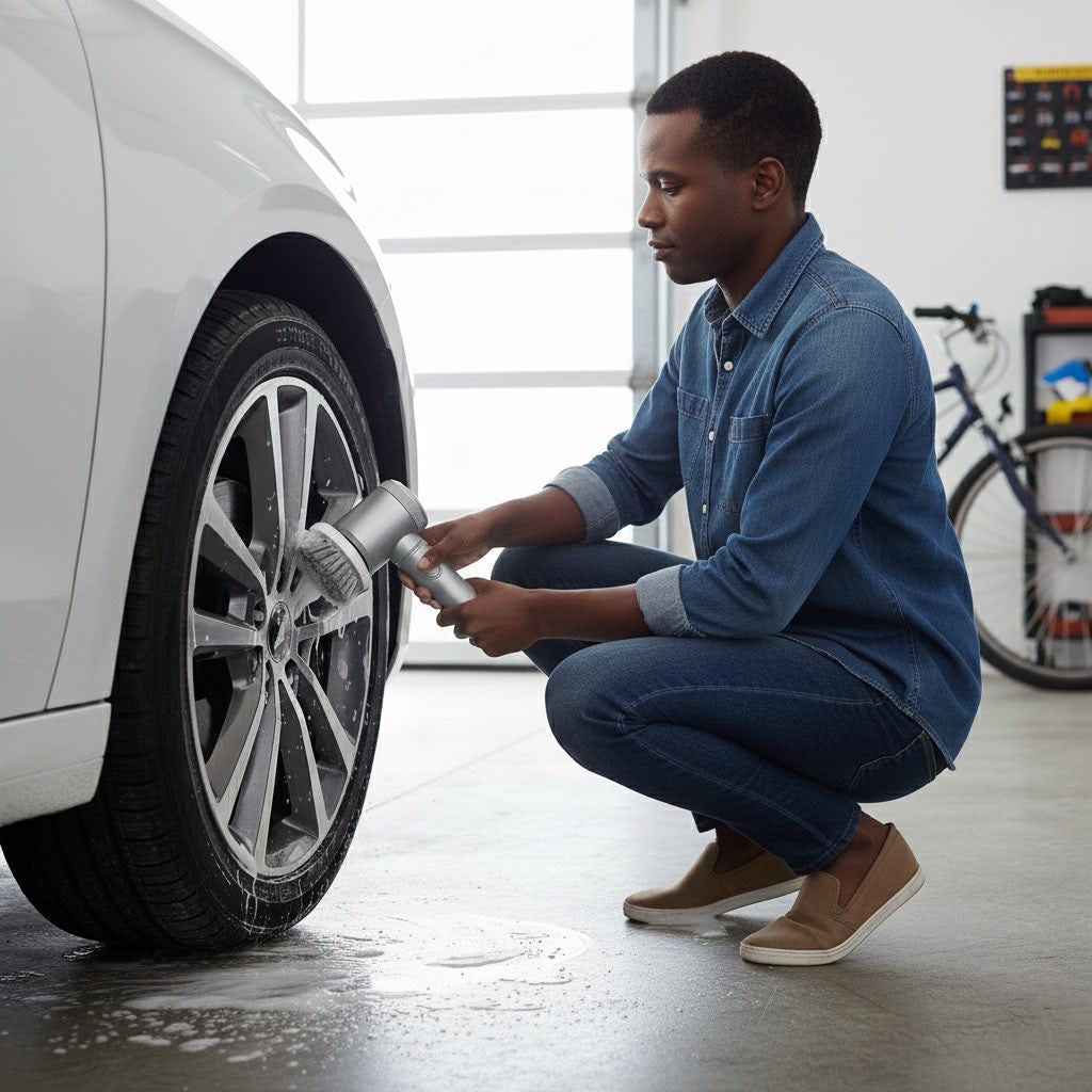 Allumez, appliquez sur la zone à nettoyer et laissez la brosse travailler. Pas besoin d’appuyer fort. Vous gagnez du temps et vous épargnez vos bras.